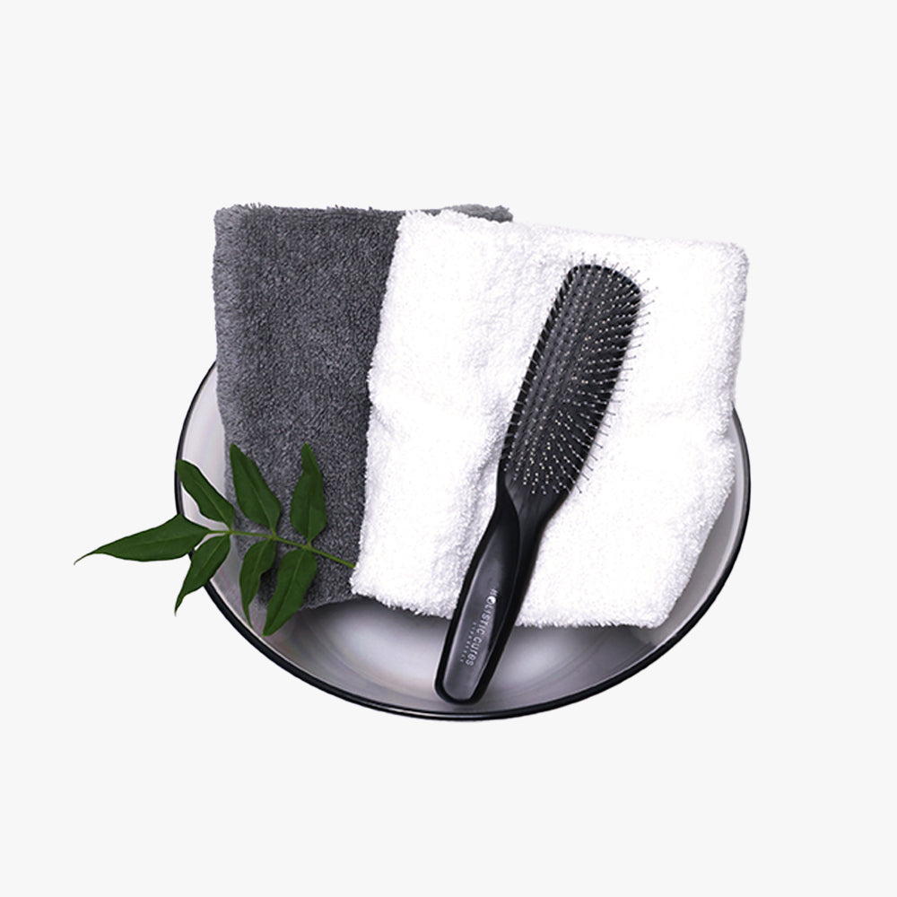 濡れている髪はとてもデリケート。タオルドライをするときは、濡れた髪を「ヘアドライタオル」でやさしくポンポンと押さえながら余分な水分を取り除きます。 毛先から少しずつ髪のもつれをとかした後、根元から毛先に向かってブラシを通すことで髪が早く乾かせ、まとまりのある髪に仕上がります。